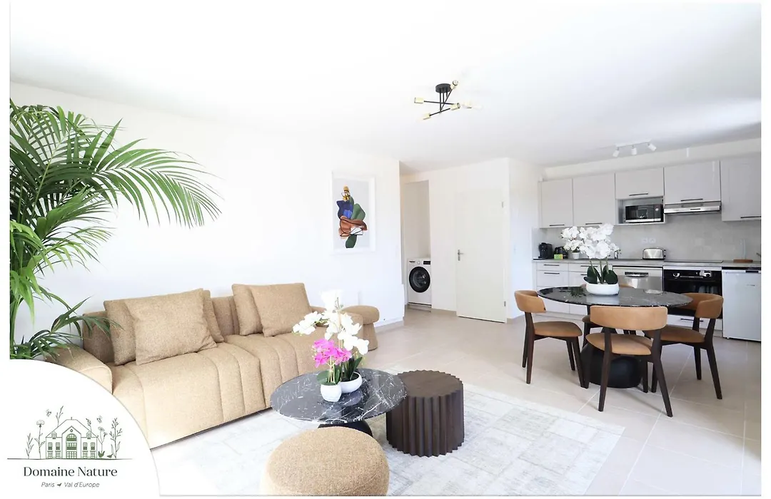 With a balcony and a seating area included, Domaine Nature - Paris/Val D'Europe Apartment also features views of the garden. They are fitted with parquet flooring. The accommodation comes with sofa beds. Enhancing your comfort, a separate toilet and a shower can be found at the apartment. Furthermore, hairdryers and towels is available.